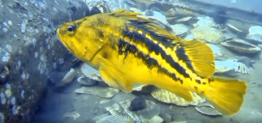 Дайвер из Приморского края в районе Находки запечатлел на видео эффектного представителя морской фауны – жёлтого морского окуня (Sebastes trivittatus). Эта лучепёрая рыба относится к семейству скорпеновых и по праву считается одним из самых красивых обитателей Японского моря, сообщает PRIMPRESS.