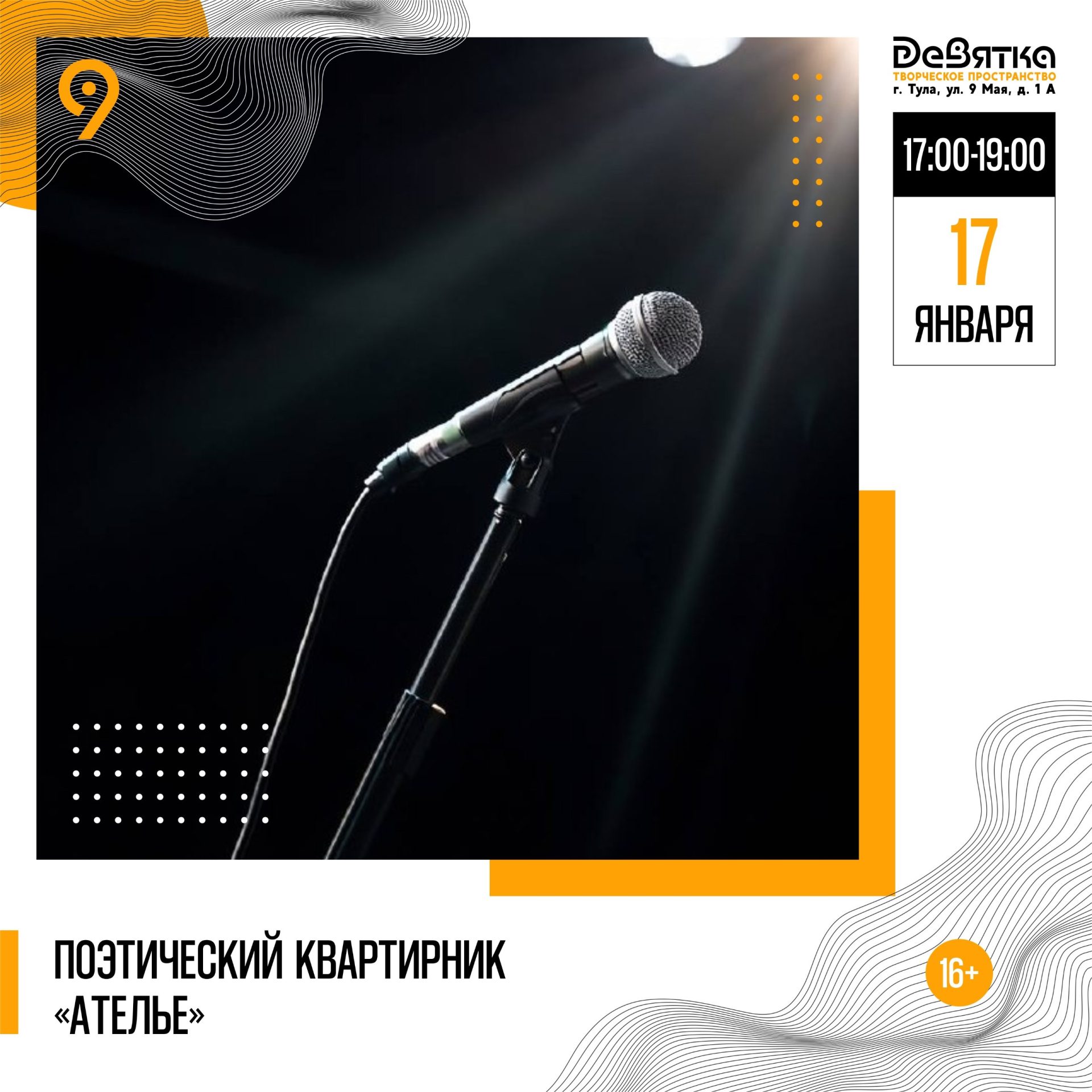 В творческом пространстве «Девятка» 17 января состоится камерная встреча любителей поэзии — квартирник «Ателье». Мероприятие объединит на одной площадке как известных представителей тульского литературного сообщества, так и начинающих авторов.
