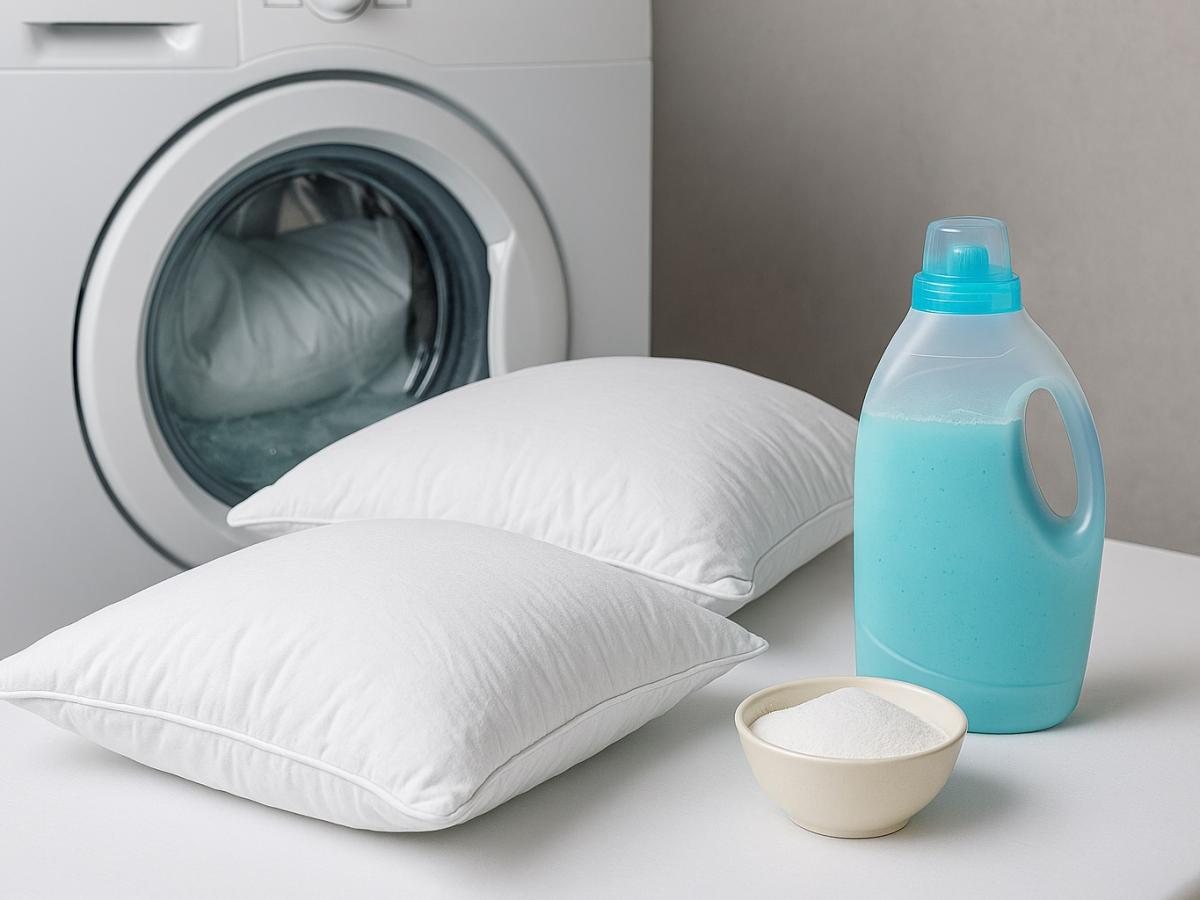 Фото: Generated by AI (DALL·E 3 by OpenAI) is licensed under Free for commercial use (OpenAI License) Подушки и стиральная машина Почему наволочки со временем желтеютОсновная причина пожелтения — сочетание пота, кожного жира, слюны и остатков косметики для лица и волос. Эти вещества впитываются в ткань и со временем окисляются, из-за чего появляются стойкие жёлтые пятна.