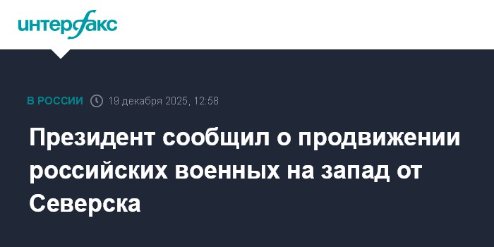 Москва. 19 декабря. INTERFAX.RU - Президент России Владимир Путин заявил, что российская армия продвигается на запад от Северска (ДНР), военнослужащие продвинулись на 1,5-2 км.