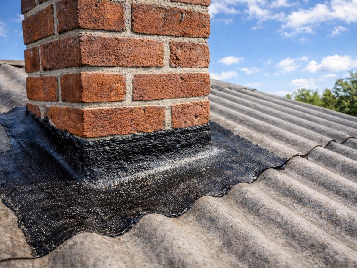 Мастика обеспечивает отличную адгезию и водонепроницаемость, а стеклоткань берёт на себя микроподвижки трубы и листов шифера. В итоге получается эластичный "пластырь", который не рвётся от температурных и сезонных нагрузок.