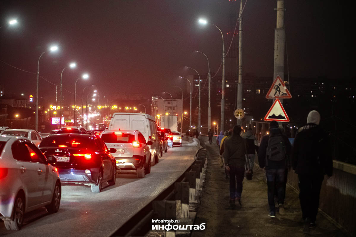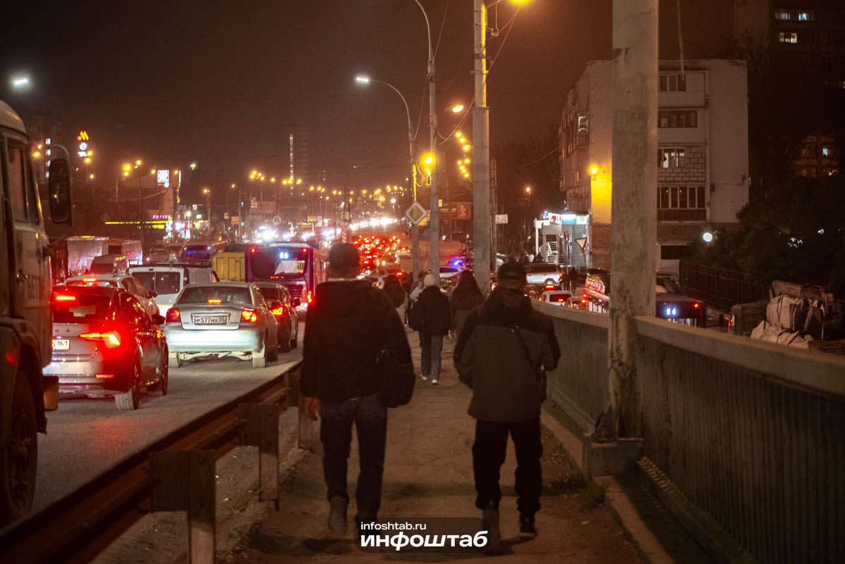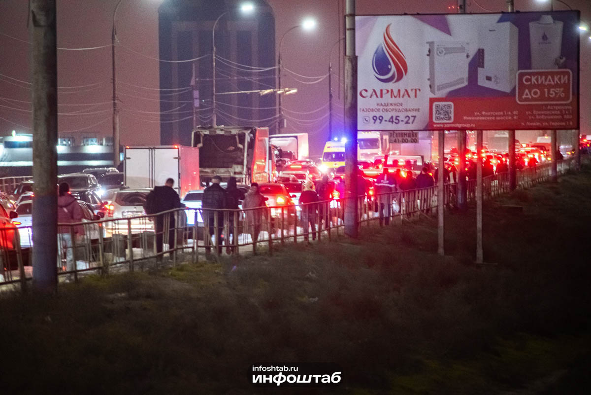 Пробки и колоны пешеходов: кадры происходящего на Новом мосту Астрахани