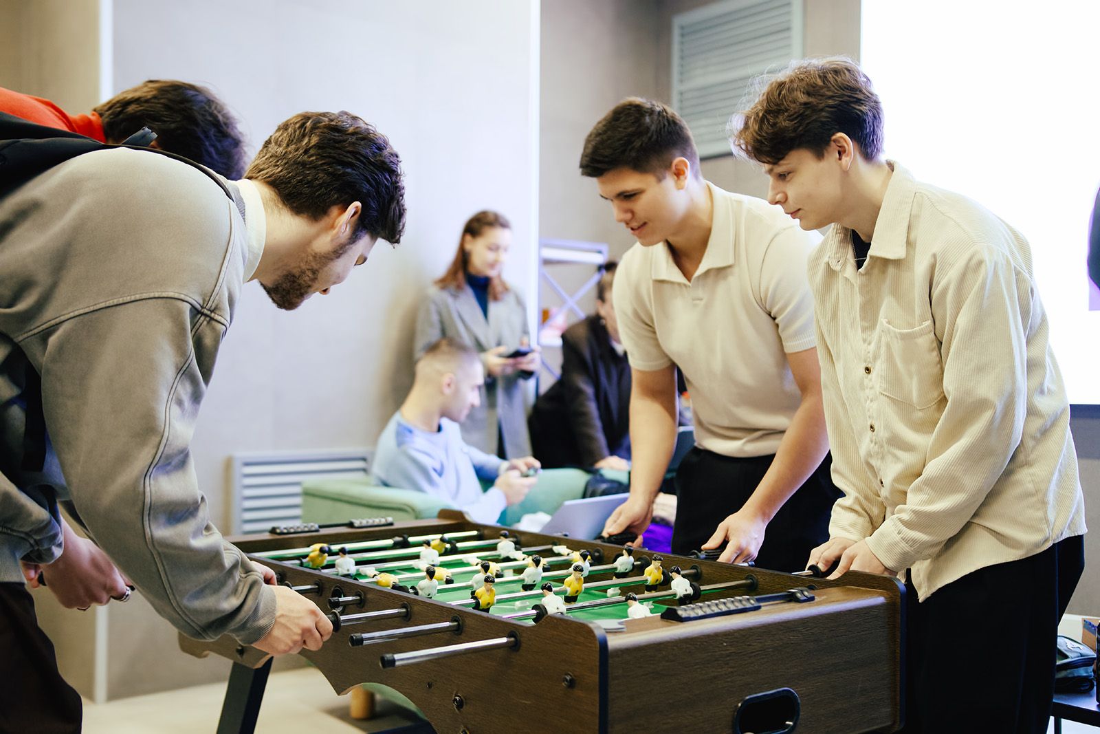 В холле можно будет сыграть в настольные игры, теннис и футбол. А в 14:45 начнется квест-экскурсия, во время которой посетители разделятся на команды по 25 человек. Каждая посетит четыре площадки: студию 3D-печати и моделирования, студию дизайна и кастомизации, медиастудию и зал свободного назначения.