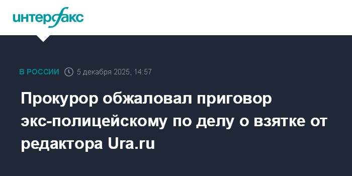 Прокурор обжаловал приговор экс-полицейскому по делу о взятке от редактора Ura.ru