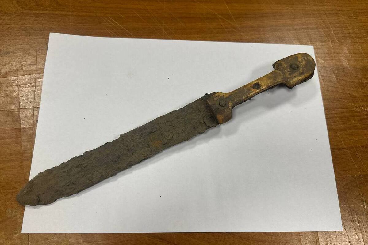 Фото: пресс-служба ГБУК ЛО «Выборгский объединенный музей-заповедник».Находка была сделана на метровом уровне от поверхности воды. Предварительно, артефакт датируется XIX веком. А его форма указывает на сходство с кинжалами типа «кама».
