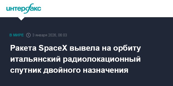 Ракета SpaceX вывела на орбиту итальянский радиолокационный спутник двойного назначения