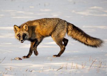 — Издалека увидев этого зверя, я подумал, что это собака, но, когда этот «песик» начал мышковать, прыгать в снег в надежде поймать мышь, я понял, что это лис. При мне зверь поймал в снегу мышь и тут же закопал ее, оставив про запас, —написал Максим Логунов.