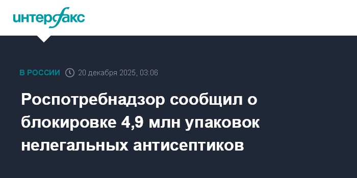 Москва. 20 декабря. INTERFAX.RU - Продажа 4,9 млн упаковок антисептиков и дезинфицирующих средств, нелегально находившихся в обороте, была заблокирована с помощью системы маркировки с ноября 2024 года, сообщили в Роспотребнадзоре.