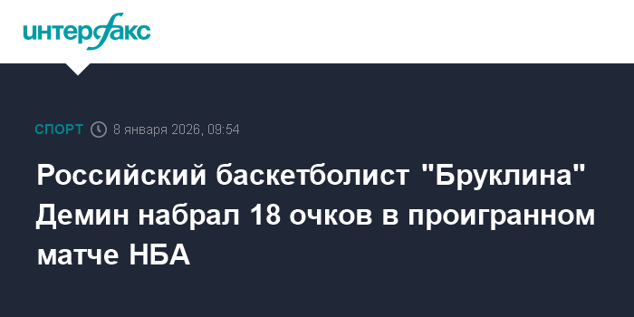 Российский баскетболист "Бруклина" Демин набрал 18 очков в проигранном матче НБА