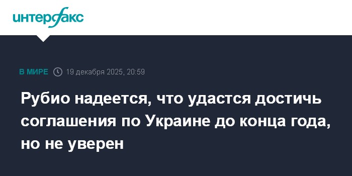 Москва. 19 декабря. INTERFAX.RU - Госсекретарь США Марко Рубио надеется на достижение соглашения по украинскому урегулированию в декабре, но при этом допустил и намного более продолжительный переговорный процесс. Он сказал об этом на итоговой пресс-конференции.