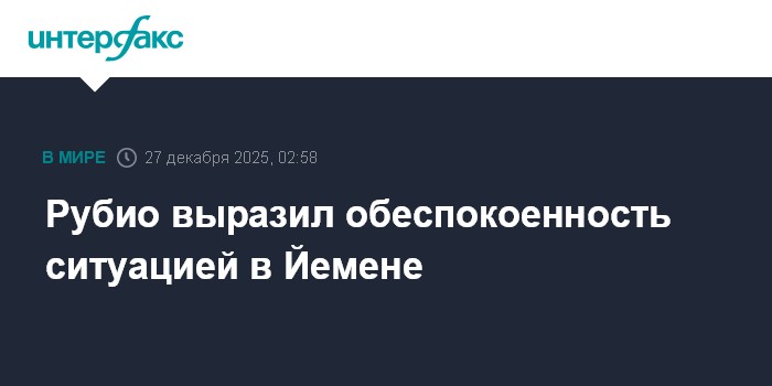 Москва. 27 декабря. INTERFAX.RU - Госсекретарь США Марко Рубио заявил об обеспокоенности в связи с обострением в Йемене и призвал стороны к сдержанности и активизации дипломатии для урегулирования ситуации.