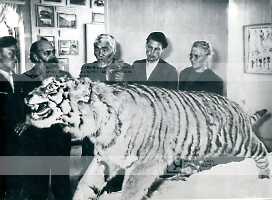 120 лет назад в Якутии добыли тигра. На фото: Охотник Петр Захаров (в центре), добывший в 1905 году тигра в Усть-Майском улусе, 1950 г. Из архивов Якутского музея истории Якутии им. Ем. Ярославского. Рассказываем историю самого известного экспоната краеведческого музея.