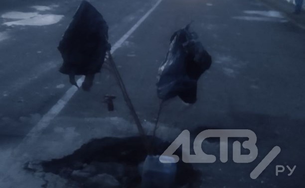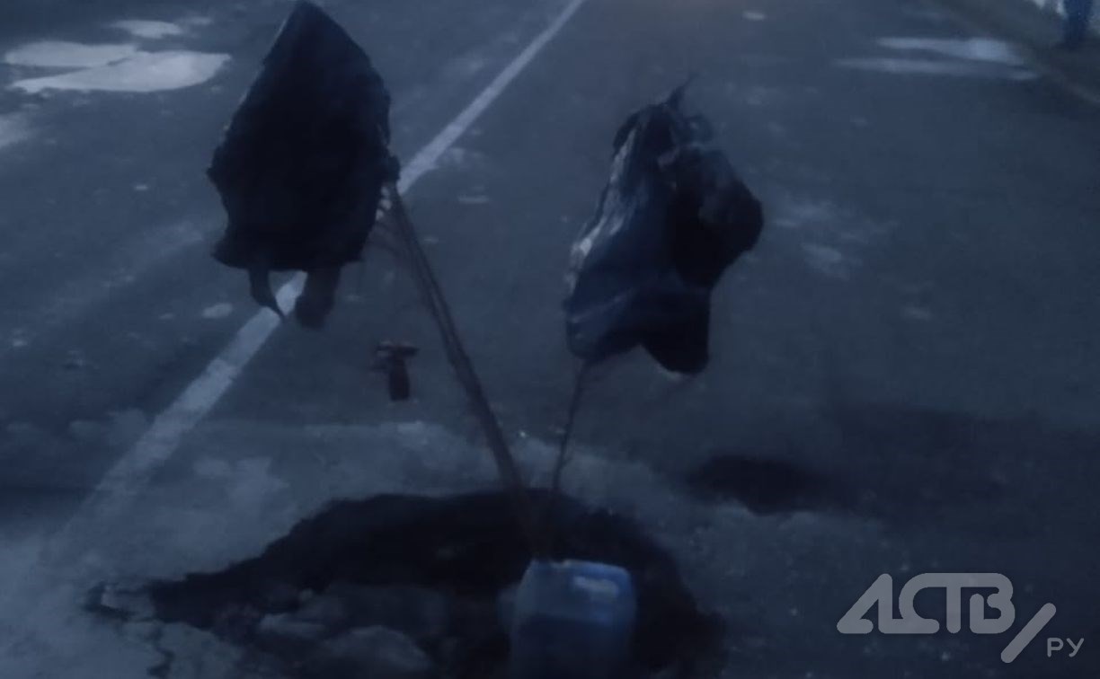 Таким образом решили предупредить земляков о яме, из-за которой накануне люди пробили колесо на авто
