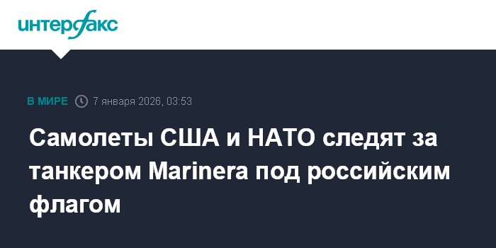 Москва. 7 января. INTERFAX.RU - Американские патрульные самолеты вместе с другими самолетами из стран НАТО следят за передвижением танкера Marinera под российским флагом к западу от Ирландии в Северной Атлантике, сообщает The Independent.