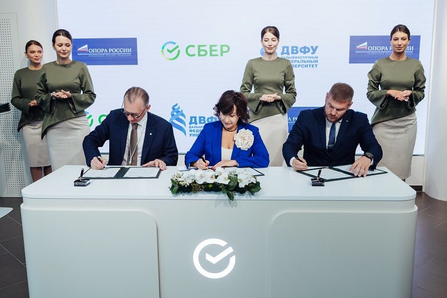 На полях X Восточного экономического форума председатель Дальневосточного Сбербанка Андрей Черкашин подписал трёхстороннее соглашение о сотрудничестве между ПАО Сбербанк, Дальневосточным федеральным университетом (ДВФУ) и Приморским краевым отделением Общероссийской общественной организации малого и среднего предпринимательства «ОПОРА РОССИИ». Данный документ закладывает основу для системной работы по развитию молодежного технологического предпринимательства и усиления практической направленности образования.
