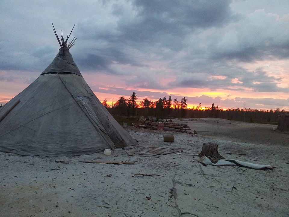 Чум – это, наверное, самое известное традиционное жилище Арктики. Разве что необычные ледяные иглу могут соревноваться с ним по известности. Строится он достаточно просто. Для этого необходимы несколько десятков сосновых шестов, которые ставятся по кругу, и на них крепятся покрышки из оленьих шкур.