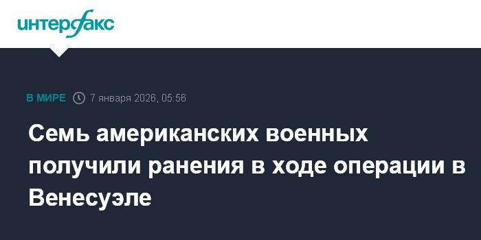 Москва. 7 января. INTERFAX.RU - В ходе военной операции США в Венесуэле были ранены семь американских военнослужащих, сообщает Associated Press со ссылкой на информированный источник.