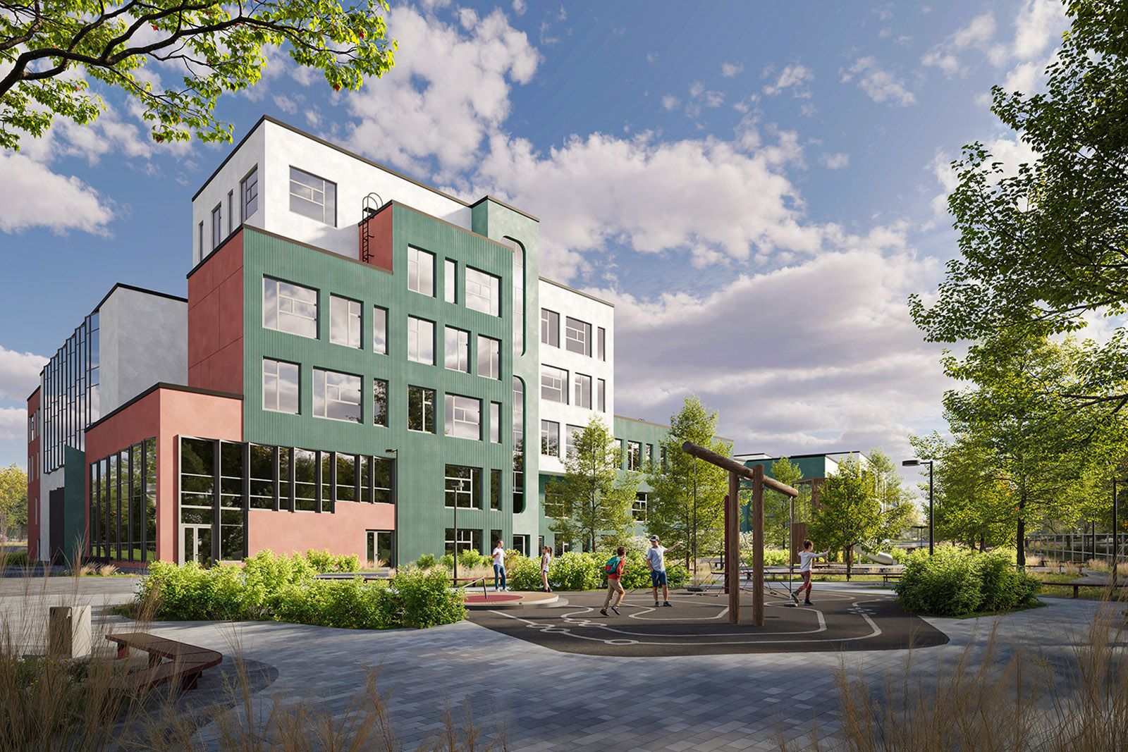 В блоке детского сада разместят восемь групп, музыкальный и физкультурный залы, медпункт, кабинеты для индивидуальных, дополнительных и развивающих занятий. На территории обустроят прогулочные площадки и спортивные зоны.