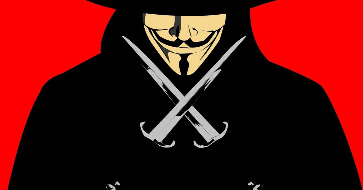 «V — значит вендетта» — антиутопия, в которой после ядерной войны к власти в Британии пришли англосаксонские фашисты. Тех, чья раса или религия отличаются от официальных, отправляют в концлагеря, а за остальными ведётся слежка. С диктатурой борется анархист в маске, называющий себя просто V. Он носит маску Гая Фокса и старинный плащ.