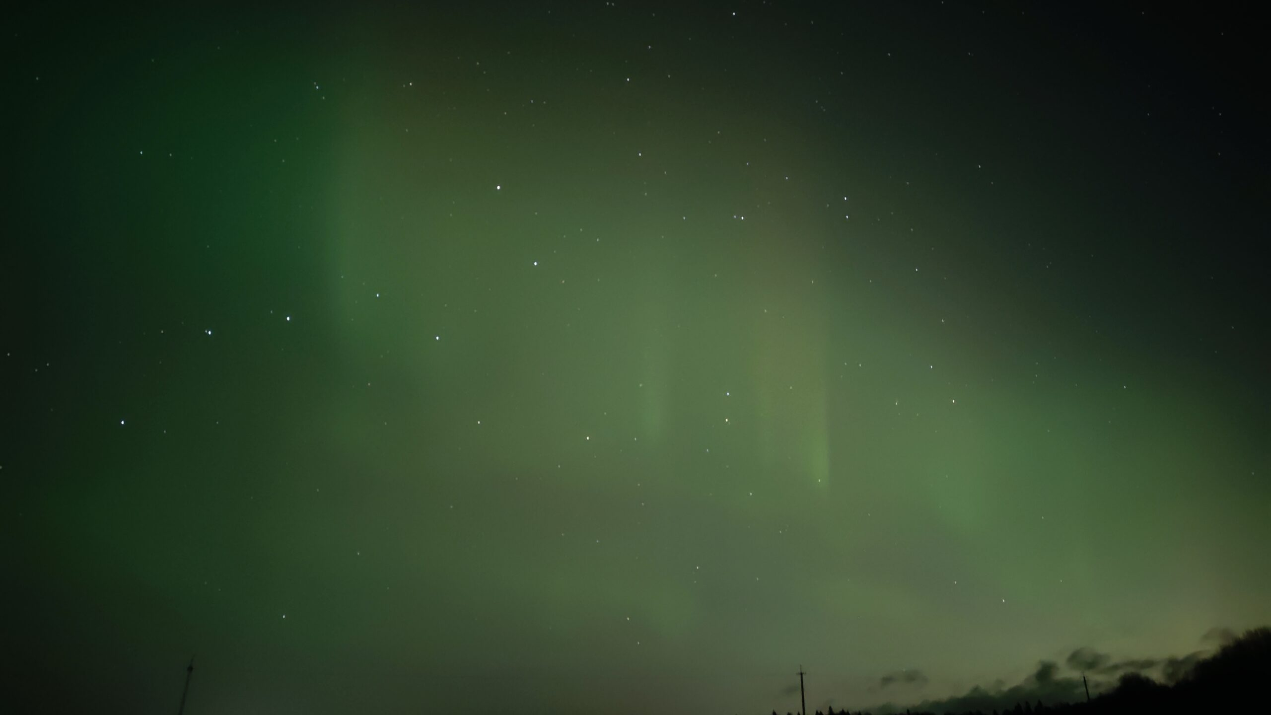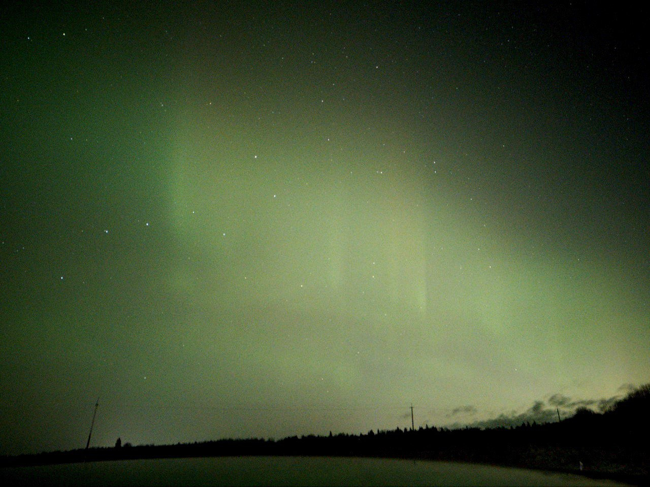 Яркие всполохи зеленого и фиолетового цветов хорошо видны на юго-западе Ленинградской области, сообщают очевидцы.