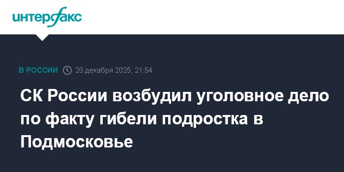 СК России возбудил уголовное дело по факту гибели подростка в Подмосковье