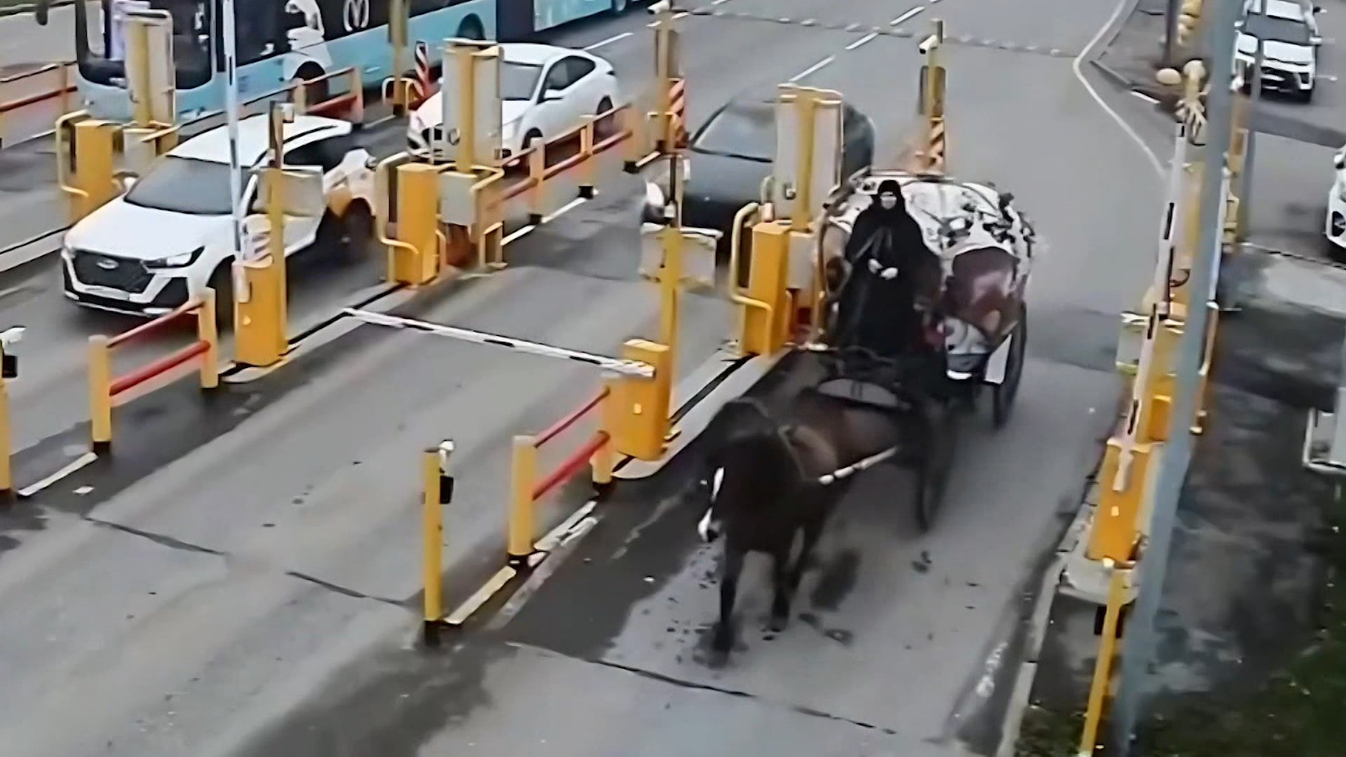 Извозчик на козлах придержал лошадь перед шлагбаумом и наравне с остальными участниками движения попал в зону прибытия, где уложился в бесплатные 15 минут. К слову, час путешествия в карете стоит порядка 15 тысяч рублей.