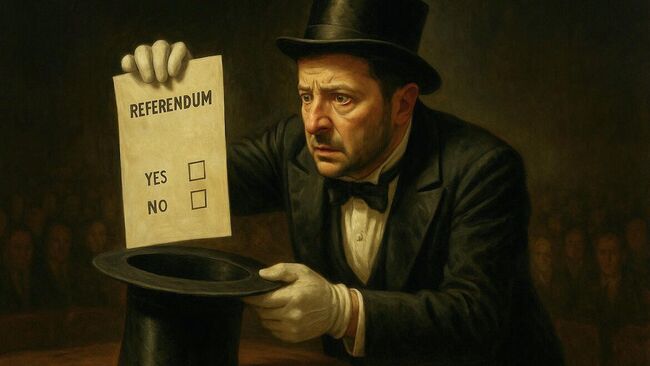 Владимир Зеленский образца декабря 2025 года в сравнении с собою в 2024-м напоминает мем с двумя псами породы шиба-ину, известными как Доге и Чимс. Качок Доге олицетворяет величие прошлого (например, 100 рублей в детстве), сутулая собака Чимс — ограниченность настоящего (100 рублей сейчас).Еще год назад тот, кто называет себя президентом Украины, собирался вернуть Крым силой, стребовать с русских репарации, развалить Россию на части и отвергнуть абсолютно все условия Москвы по мирному договору. В 2025 году большинство "невозможных" и "неприемлемых" требований России к Зеленскому вдруг стали возможными и приемлемыми сперва для США, а потом — после нескольких сеансов внушения с их стороны — и для Зеленского тоже.Теперь криворожский Чимс умоляет американцев оставить Украине хотя бы Запорожскую АЭС, хотя контролируют ее совсем не американцы. А тех, кто на самом деле ее контролируют, ему умолять уже бесполезно.Другое дело, что вопрос ЗАЭС — всего лишь предлог, очередной способ тянуть время. Пан атаман слишком слаб духом, чтобы принять любое из тяжелых, но честных и мужественных решений.Первый (и лучший для украинцев) вариант — согласиться с условиями России, остановить боевые действия, обрести смысл в мирной жизни, попытаться сохранить власть (но последнее, будем честны, вряд ли: зафиксировав поражение Украины, Зеленский станет козлом отпущения).Второй вариант — отказаться от мирной концепции Трампа и гордо принять все последствия отказа. Они, вероятно, будут для Украины тяжелыми: американцы лишат ее разведданных, оружия и других форм поддержки, что скажется на положении ВСУ и уровне жизни населения. В какой-то момент за последствия все равно придется ответить, и — будем честны до конца — это замедленное самоубийство Украины в целом, вознесение ее и себя на жертвенный алтарь бандеровщины. Глупо, зато смело и торжественно.Зеленским был выбран типично украинский путь — увиливания и избегания. Но неожиданно сильный напор американцев вынудил его отречься почти от всех "красных линий" за несколько дней. К настоящему моменту у Киева осталось только два предлога: помимо ЗАЭС, за которую цепляются с помощью МАГАТЭ, это полный вывод ВСУ из Донбасса. В последнем случае криворожцу пригодилась заначка из прошлого — положение конституции Украины, по которому изменение границ государства должно утверждаться через общенациональный референдум.Те, кто эту конституцию писали, осознавали, что независимая Украина разинула рот широко, но сохранить все земли УССР в ее составе будет трудно. Промышленно развитый юго-восток в сравнении с западом был иноязычным, славил русских героев, обладал другой исторической памятью, а Крым засобирался в родную гавань (то есть обратно в Россию) еще до развала Советского Союза. Потому основной закон и снабдили положением, по которому Одесса или Севастополь смогут отделиться только в том случае, если на это согласятся львовские рагули.Эта заготовка пригодилась и предыдущему президенту Украины: увиливая от реализаций Минских соглашений, он ссылался на необходимость общеукраинского референдума, результат которого был предопределен. Так соглашения были погублены, но результат украинцам вроде бы не понравился: нынешний вариант сделки стократно хуже той, которую заключали с Петром Порошенко. Если и она не состоится, след