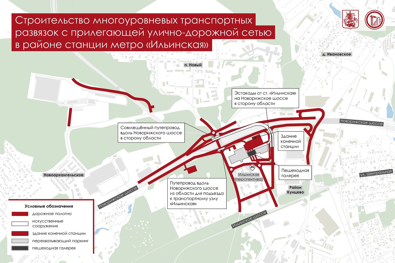 — путепровод и дублер вдоль Новорижского шоссе для съезда в сторону будущего транспортного узла «Ильинская»;