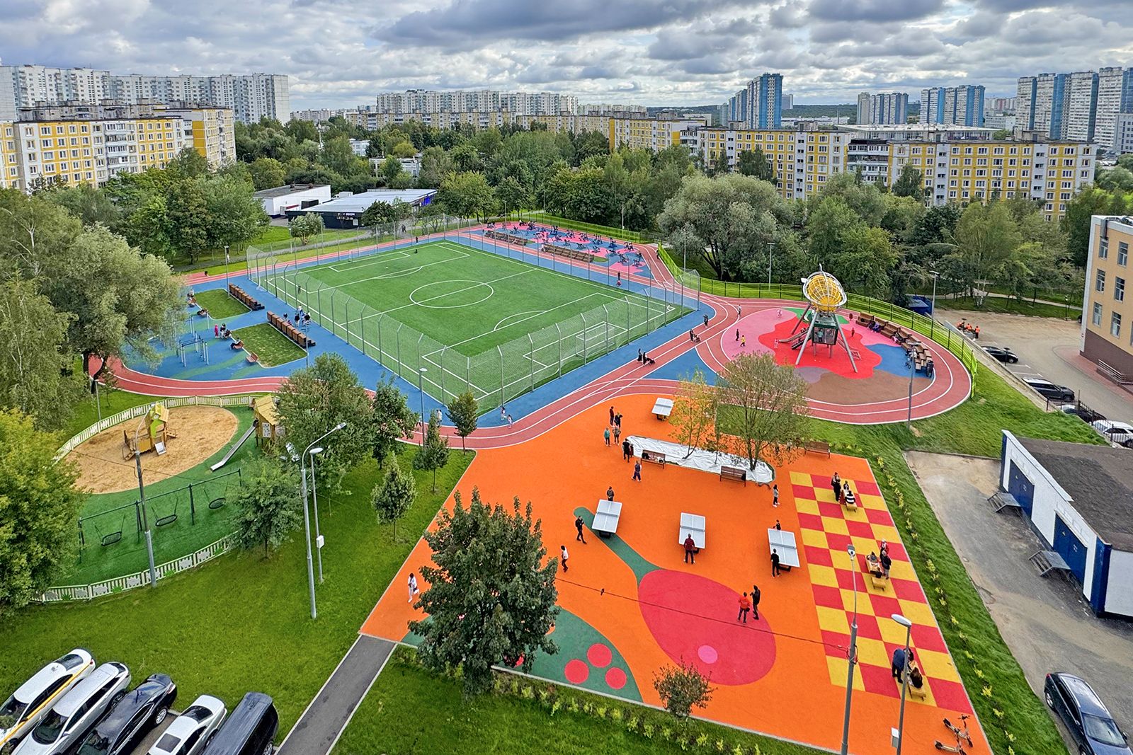 Кроме того, в районе Ясенево завершился масштабный проект комплексного благоустройства на ул. Ясногорская. На территории площадью более 3 га создали современный спортивный кластер. Центральное место занимает полноразмерное футбольное поле с трибунами и беговыми дорожками.