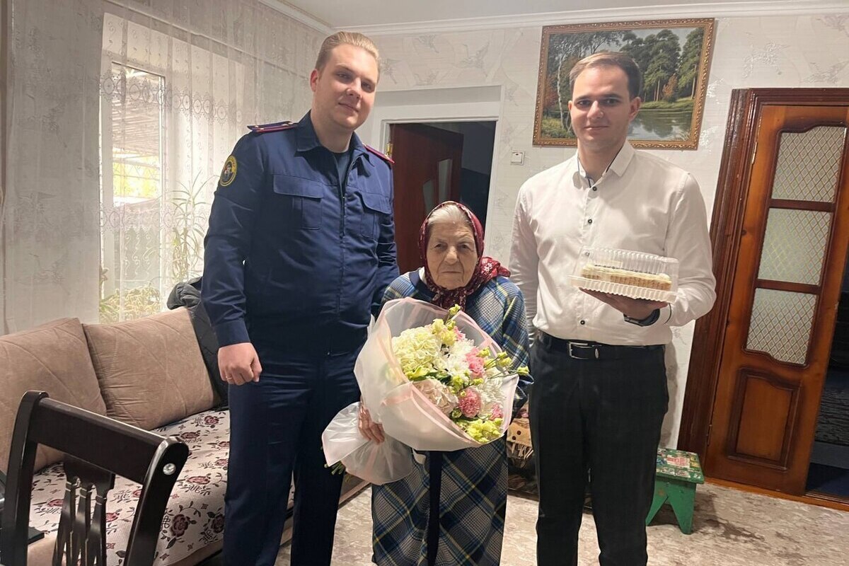 Офицеры Следственного комитета поздравили фронтовичку с днем рождения, поблагодарили за мужество и вклад в Победу, пожелали крепкого здоровья и благополучия.