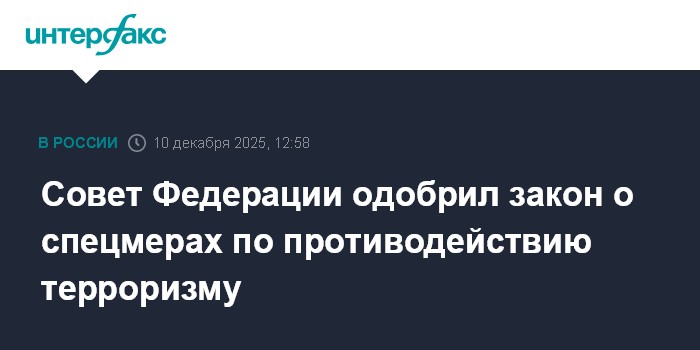 Совет Федерации одобрил закон о спецмерах по противодействию терроризму