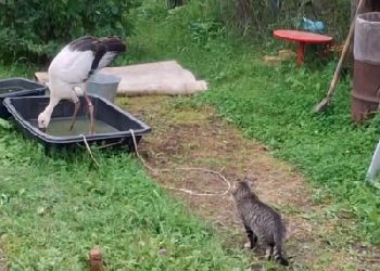 Но на следующий день, орнитолог, увидел, что аист снова прилетел во двор на веранду. Птица не стеснялась и пошла осматриваться окрестности.