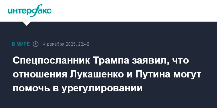 Спецпосланник Трампа заявил, что отношения Лукашенко и Путина могут помочь в урегулировании