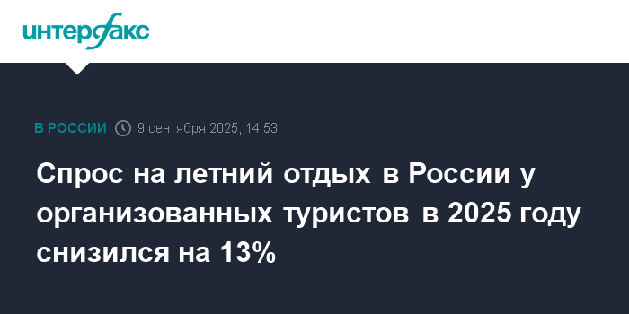 Спрос на летний отдых в России у организованных туристов в 2025 году снизился на 13%