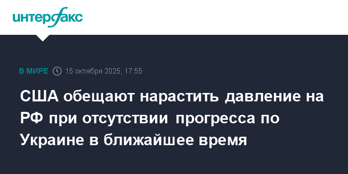Москва. 15 октября. INTERFAX.RU - США и их союзники по НАТО прибегнут к дальнейшим мерам против России, если не увидят успехов в украинском урегулировании в ближайшее время, заявил в среду шеф Пентагона Пит Хегсет.