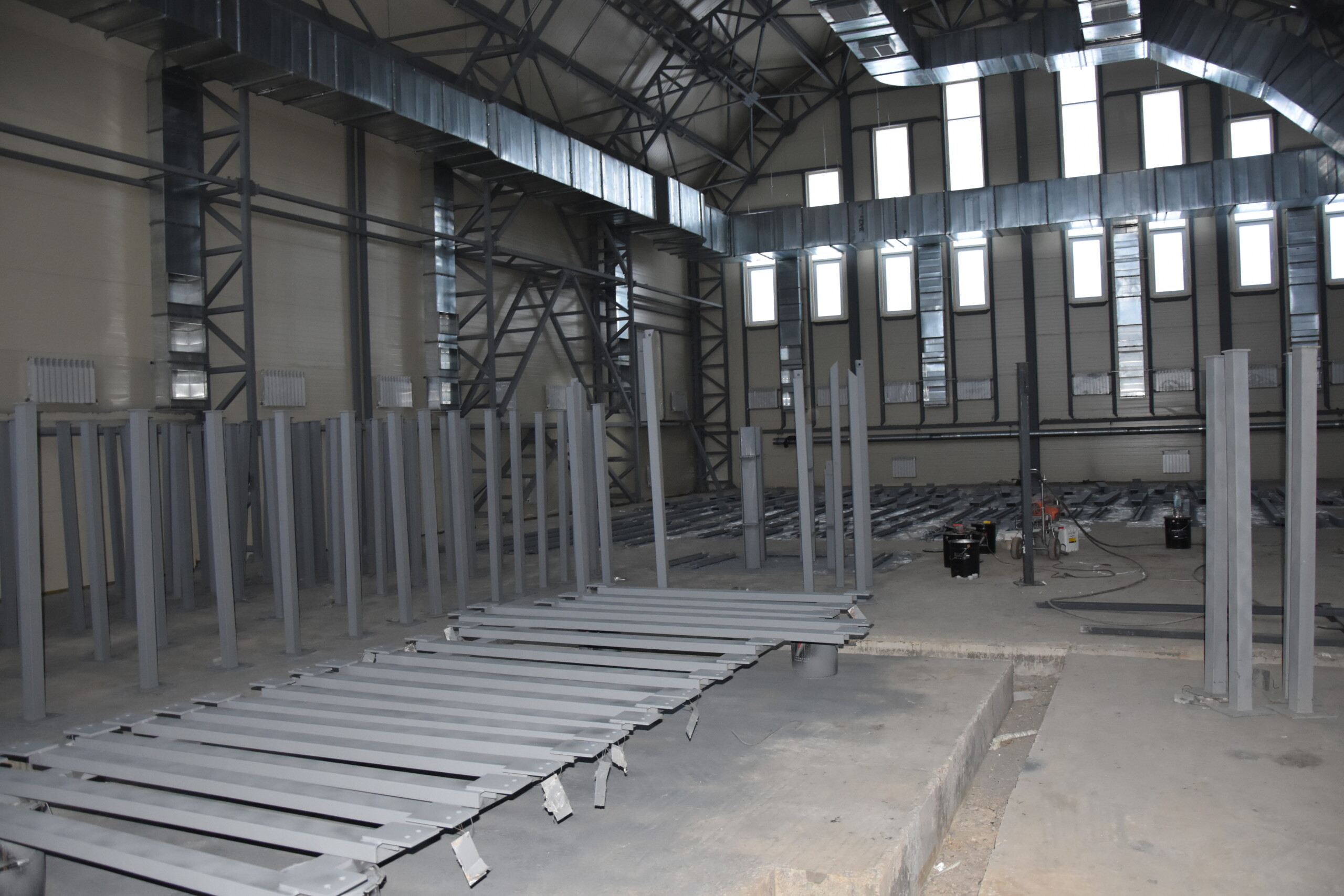 На объекте трудятся сразу два подрядчика: нижегородская компания ООО «Эврика» выполнила устройство бетонного основания под будущий спортивный объект и подпорной стенки. Также рабочие проложили внутриплощадочные сети водоснабжения, водоотведения, газоснабжения, отопления. По словам подрядчика, запланированные на этот год работы выполнены. Компании предстоит выполнить благоустройство территории: заасфальтировать дорогу, вымостить плиткой тротуары, сделать парковку, привести в порядок крыльцо.