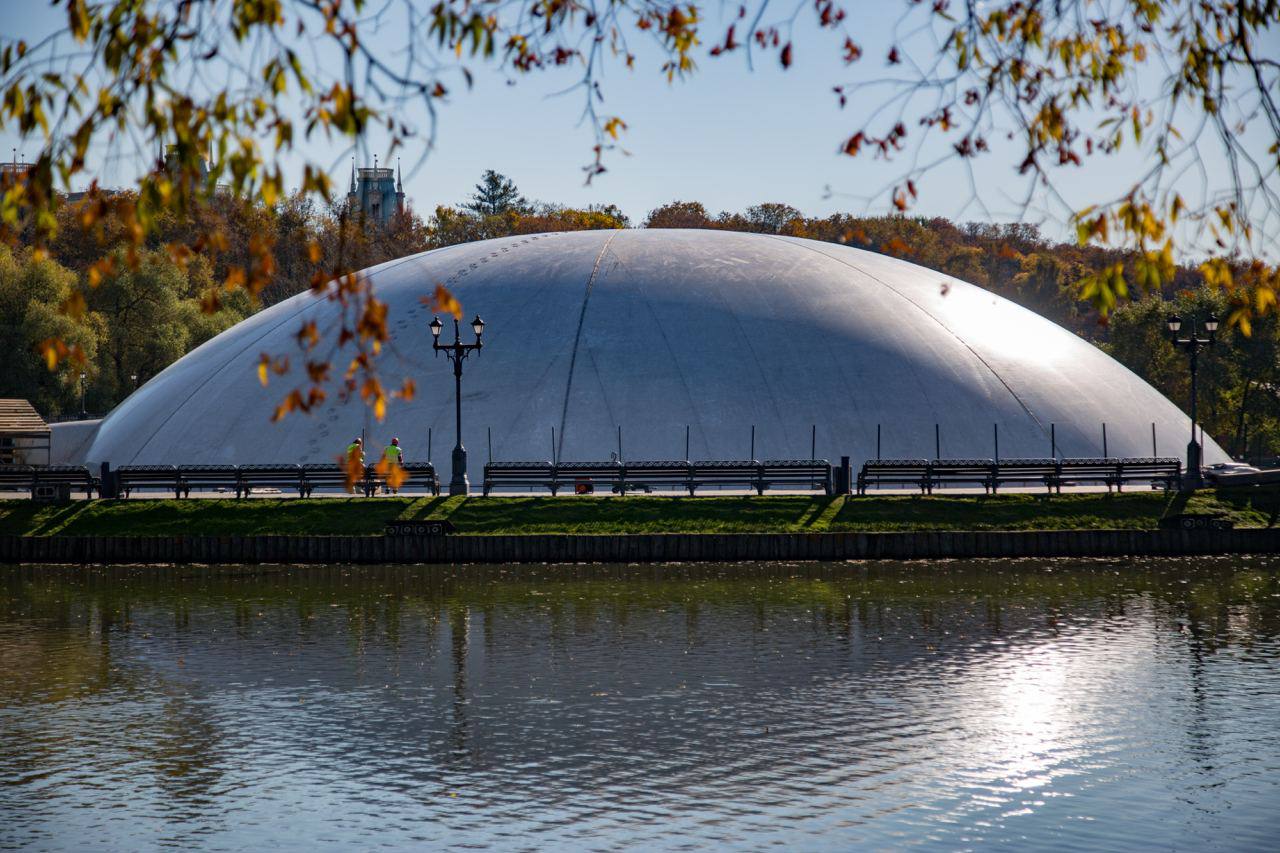 Светодинамический фонтан в парке музея-заповедника «Царицыно» накрыли куполом к зиме
