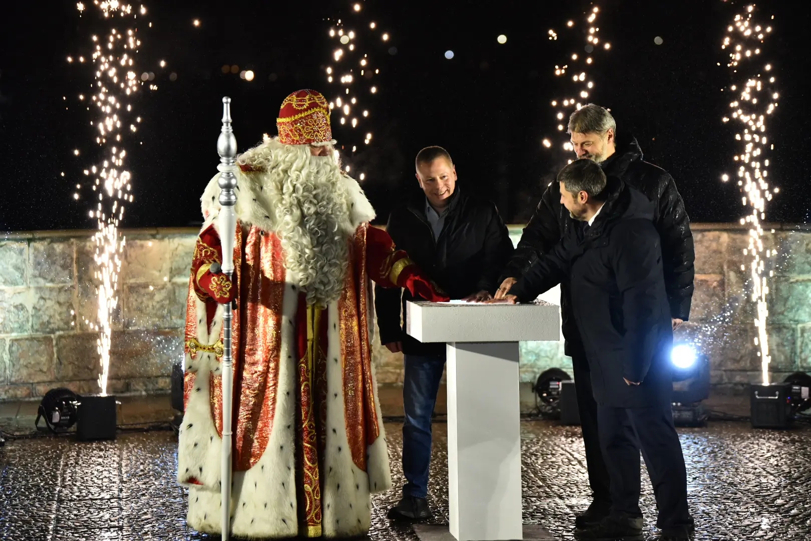 Праздничная программа в день «НаШествия Дедов Морозов» завершилась световым шоу «Рыбинский мост».