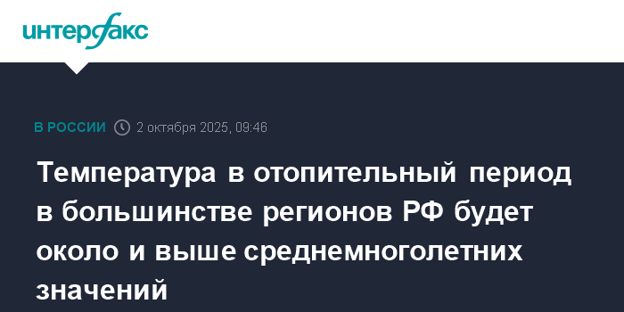 Температура в отопительный период в большинстве регионов РФ будет около и выше среднемноголетних значений