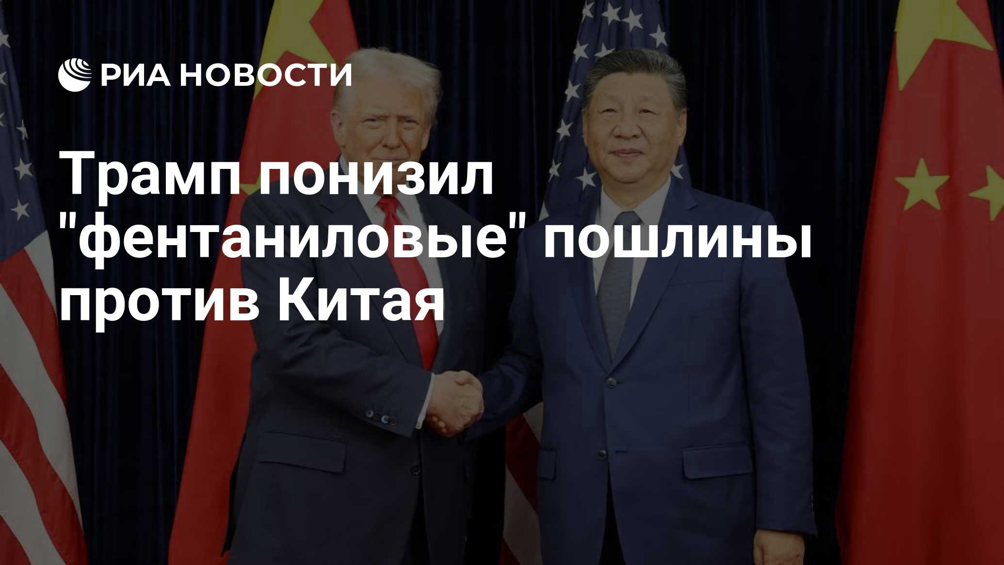 ВАШИНГТОН, 5 ноя - РИА Новости. Президент США Дональд Трамп, как и обещал после встречи с лидером КНР Си Цзиньпином, понизил связанные с претензиями по трафику опиоидов пошлины с 20% до 10%, говорится в опубликованном указе. "В свете приверженности КНР США снижают дополнительные пошлины с 20% до 10% с 10 ноября", - говорится в указе. Свое решение Трамп обосновал тем, что получил от руководства Китая заверения в готовности предпринять шаги для борьбы с наркотрафиком. Как заявил американский лидер ранее, после снижения связанных с фентанилом пошлин общее значение тарифов снизится до 47%.