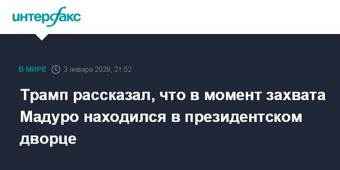 Москва. 3 января. INTERFAX.RU - Лидер Венесуэлы Николас Мадуро в момент своего захвата находился под усиленной охраной в президентском дворце в Каракасе, заявил на пресс-конференции в Мар-а-Лаго президент США Дональд Трамп.