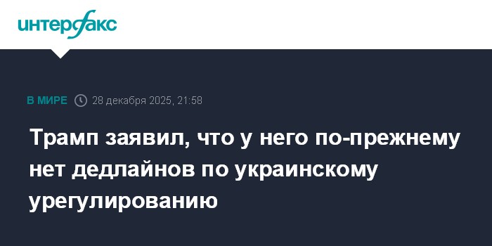 Москва. 28 декабря. INTERFAX.RU - Президент США Дональд Трамп заявил в воскресенье, что у него нет определенного крайнего срока для решения украинского конфликта.