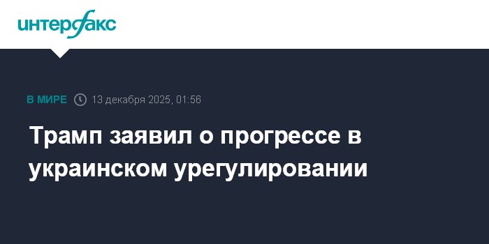 Москва. 13 декабря. INTERFAX.RU - Президент США Дональд Трамп заявил, что видит прогресс в урегулировании конфликта на Украине.