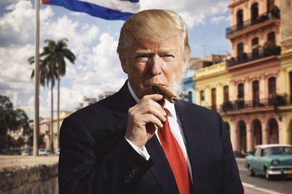 Трамп «закурил» сигару на фоне развевающегося флага Кубы