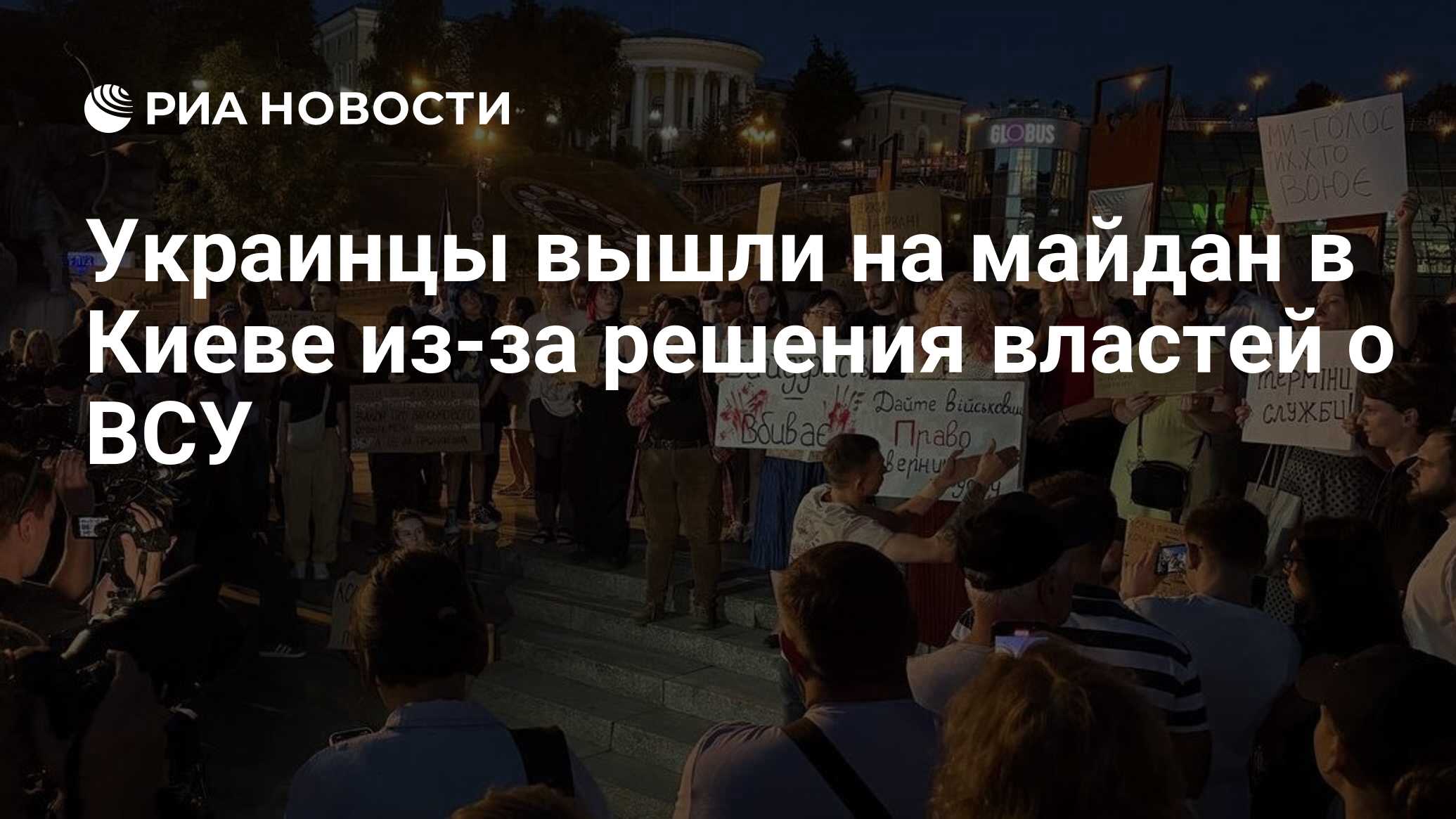 МОСКВА, 5 сен — РИА Новости. На площади Независимости в Киеве (майдане Незалежности) начался митинг против законопроектов, усиливающих ответственность для военнослужащих за неповиновение командованию и за случаи самовольного оставления части, передает украинское издание "Страна.ua"."Участники акции настаивают на необходимости принятия закона о военном омбудсмене как инструмента защиты прав военнослужащих и призывают власть отказаться от практики "закручивания гаек" в армии", — говорится в сообщении.Организаторы демонстрации заявляют, что новые законопроекты фактически уничтожают эффективный способ перевода военных после самовольного ухода из части в новые подразделения, вынуждая их возвращаться в прежние условия, пишет издание."Страна.ua" со ссылкой на служащего в ВСУ журналиста Владимира Бойко 7 июня сообщало, что более 90 тысяч уголовных производств по статьям о самовольном оставлении части и дезертирстве зарегистрировано в ВСУ за первые пять месяцев этого года, а всего с февраля 2022 года — свыше 213 тысяч.На Украине с 24 февраля 2022 года действует режим военного положения. Мужчинам в возрасте от 18 до 60 лет запрещено выезжать из страны. Повестки могут вручить в самых разных местах: на улицах, автозаправках или в кафе. При этом силовики и военные практикуют облавы на призывников, зачастую применяя насилие.