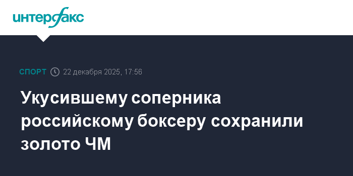 Москва. 22 декабря. INTERFAX.RU - Международная боксерская ассоциация (IBA) оставила в силе результат россиянина Всеволода Шумкова в победном финале чемпионата мира-2025 в Дубае, сообщает пресс-служба IBA.