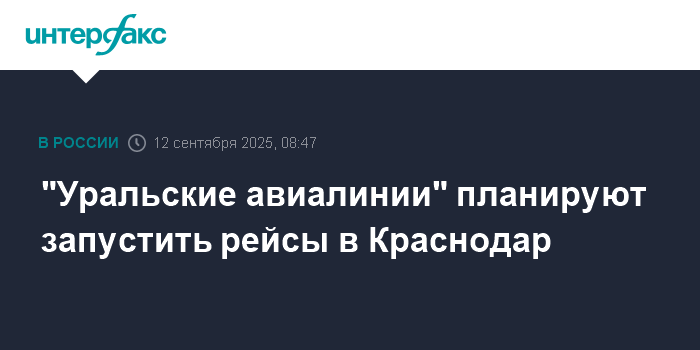 Москва. 12 сентября. INTERFAX.RU - "Уральские авиалинии" планируют запустить рейсы в Краснодар и из него, сообщили "Интерфаксу" в пресс-службе авиакомпании.