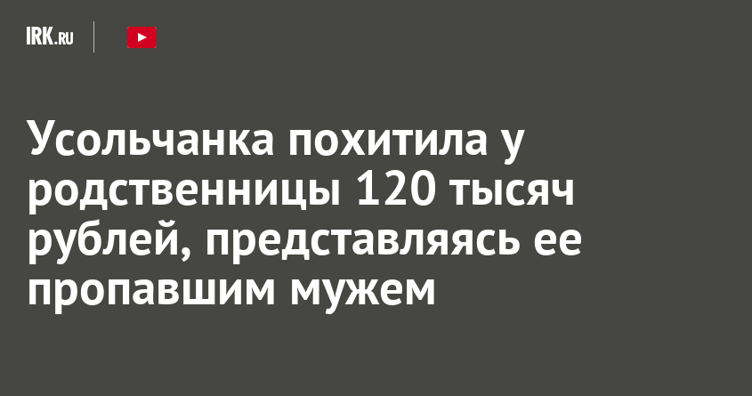 Усольчанка похитила у родственницы 120 тысяч рублей, представляясь ее пропавшим мужем