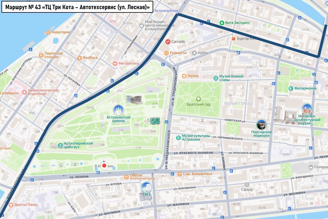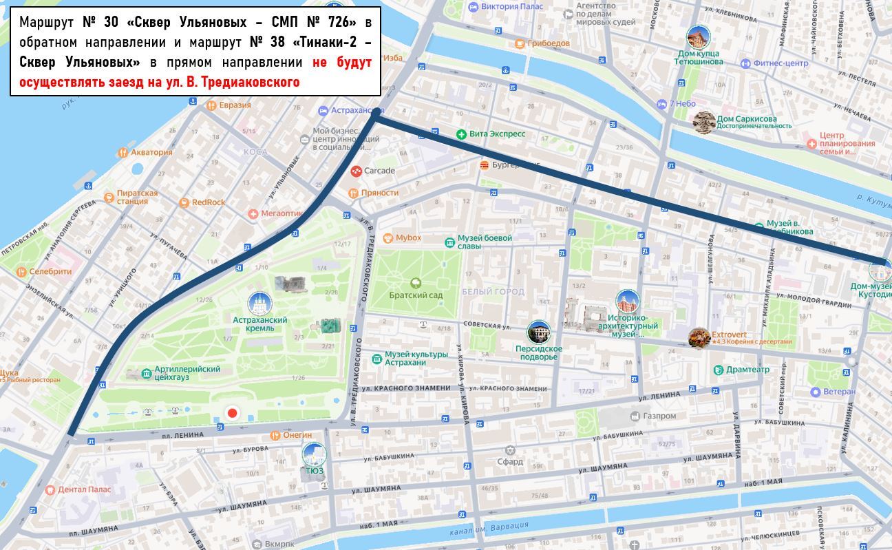ул. В. Тредиаковского — от ул. Красного Знамени до ул. Ленина;