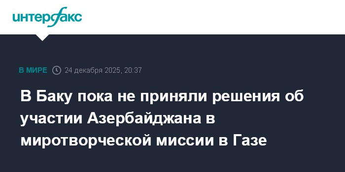 В Баку пока не приняли решения об участии Азербайджана в миротворческой миссии в Газе